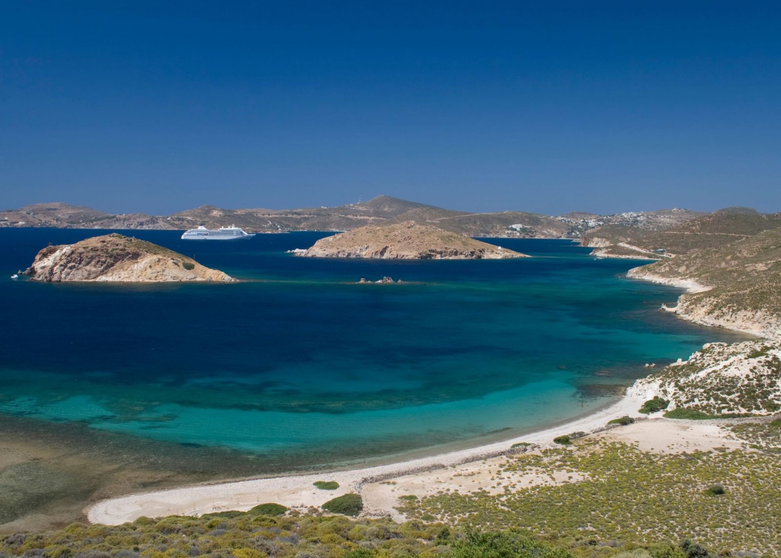 Também tem boas estadias, com destaque para o Luxuoso Patmos Aktis, com marina própria, spa e um conceito moderno e intimista.